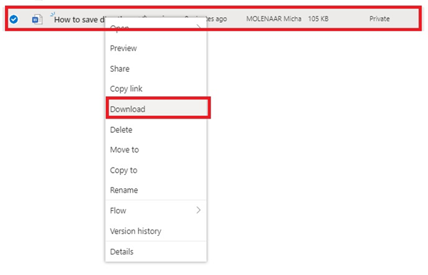 - Go to OneDrive in your internet browser, right click on the file, and select download.