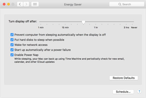 Allow your Mac to perform certain tasks while sleeping, such checking email, receiving Calendar updates, updating software, or making Time Machine backups. This uses more energy than when