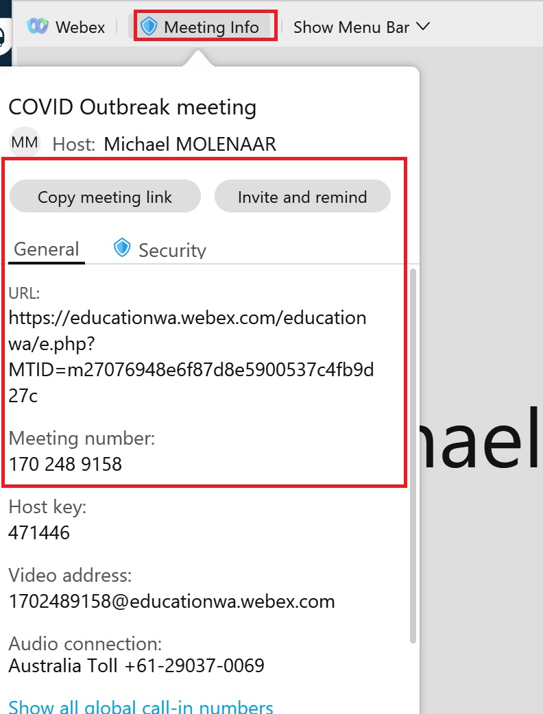 Under Meeting info, you can invite more people to the call via meeting link or provide attendees with the meeting number.
